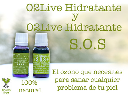 O2Live Hidratante S.O.S. Aceite de oliva extra virgen con mayor grado de ozonización, para sanar cualquier problema de piel.
